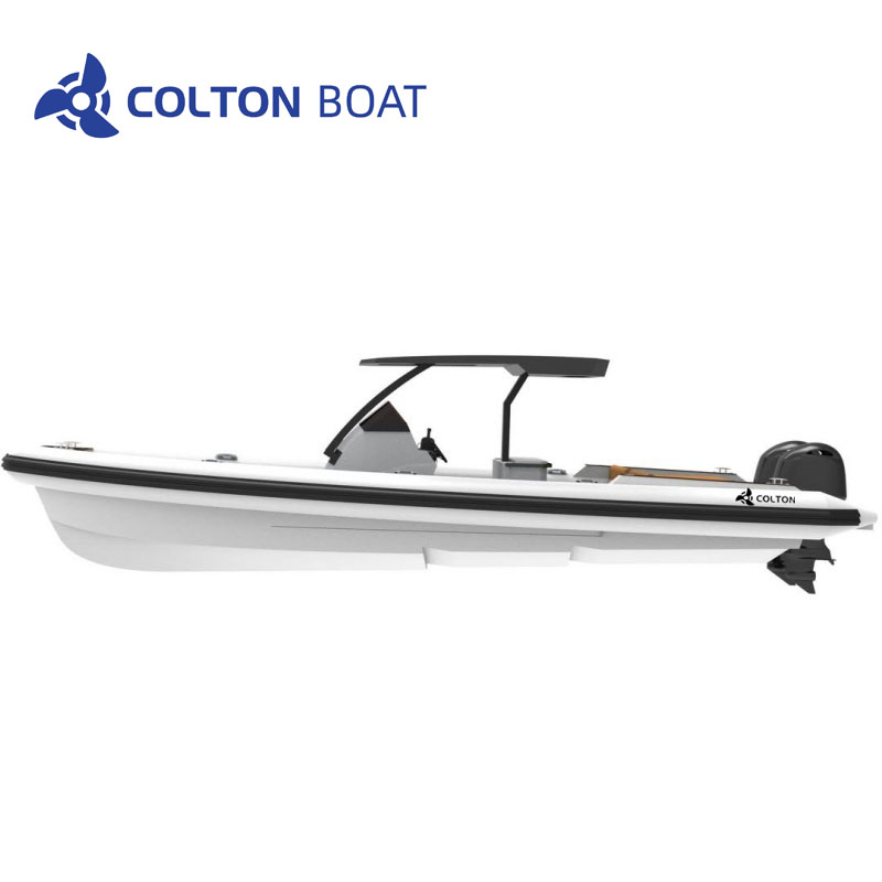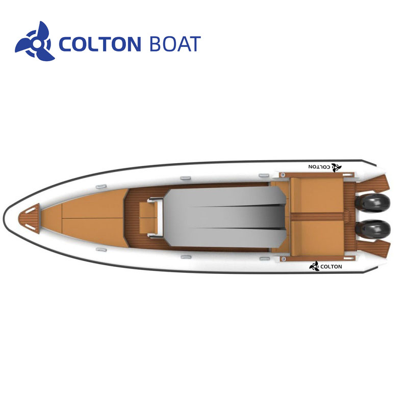 | • High tensile chromated & powder coated aluminum hull • Boat deck is 5mm plate, keel and transom is 12mm plate •Taiwan hypalon or Orca hypalon • Integrated transom supports • Staggered boat hull • 80L water tank and shower system • Middle seat with cushion • Hand basin,gas stove,toilet and refrigerator • Rear sunbed • T-top with navigation lights • Rear platform with ladder • Reinforced keel guard • Side stroller • Step lights and underwater lights | • Hydraulic steering system & steering wheel • Boat trailer • Boat cover • Electric inflating pump • Electric windlass • 8KG stainless steel anchor and 8mm anchor chain • Compass • VHF set • Blue tooth speaker system • Garmin/Lowrance/Simrad GPS and sounder • Searching light • Yamaha or Mercury engine |