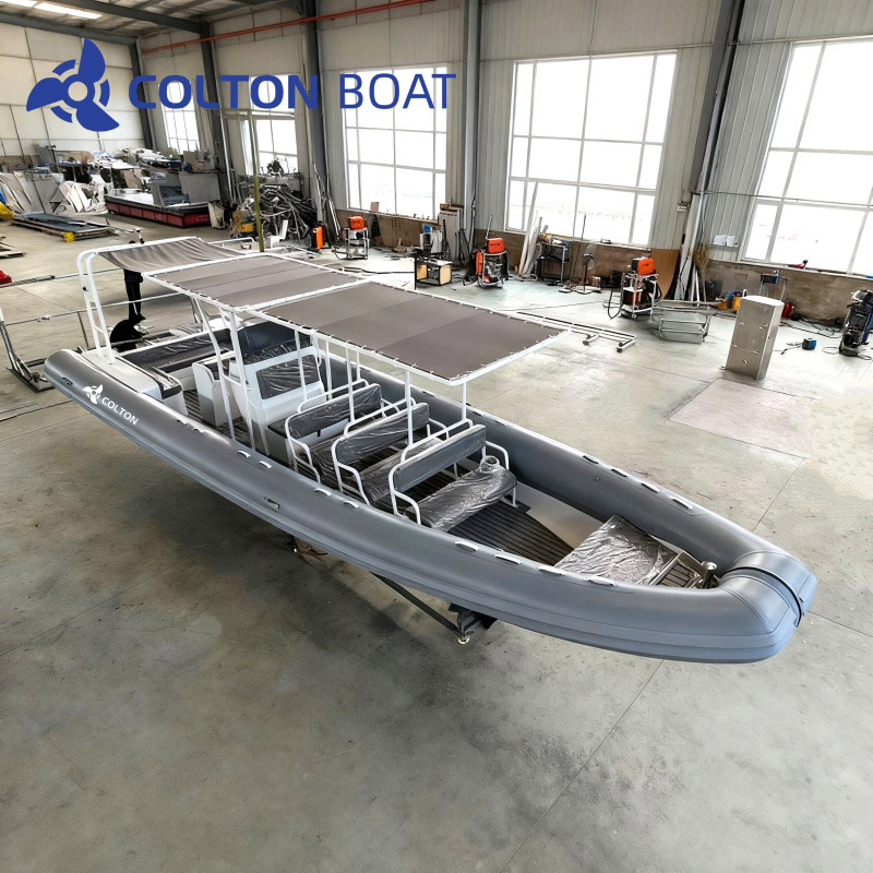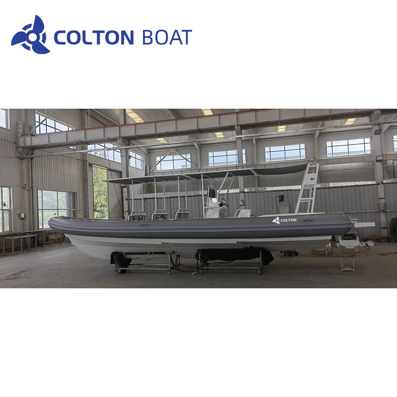 | • High tensile chromated & powder coated aluminum hull • Boat deck is 5mm plate, keel and transom is 12mm plate • Taiwan hypalon or Orca hypalon • Integrated transom supports • Staggered boat hull • Integrated inside keel • Middle seat with cushion • Rear seat with seat cushions • Front anchor roller or bollard • T-top with navigation lights • Rear platform with ladder • Reinforced keel guard | • Hydraulic steering system & steering wheel • 80L water tank with shower system • Hand basin,gas stove,toilet and refrigerator • Step lights and underwater lights • Boat trailer • Boat cover • Electric inflating pump • Electric windlass • 8KG stainless steel anchor and 8mm anchor chain • Compass • VHF set • Blue tooth speaker system • Garmin/Lowrance/Simrad GPS and sounder • Searching light • Side stroller • Yamaha or Mercury engine |